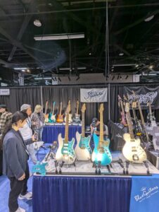 今日は富山の楽器店「Blue Guitars」の出展ブースを見学。NAMMには数年続けて出展しているようで、